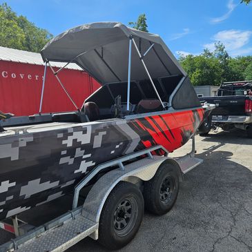 Have an existing frame but need a new cover or bimini top? We can design a new cover that will fit to your existing frame. Bring the boat to us with the frame, and get rid of the old cover. Top Gun Fabric and Aqualon Edge fabric are great options for boat covers.